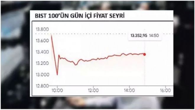 Haftanın ilk işlem gününde BIST 100 Endeksi, önceki kapanışa göre 730 puan ve yüzde 5.32 azalışla 12 bin 987 puana indi. Bankacılık endeksi yüzde 5.81, holding endeksi yüzde 7.04 değer kaybetti. Tüm sektör endeksleri gerilerken, en çok kaybettiren yüzde 9.08 ile tekstil deri oldu. Gün ortasında endeks toparlanarak 13 bin 367’ye yükseldi.